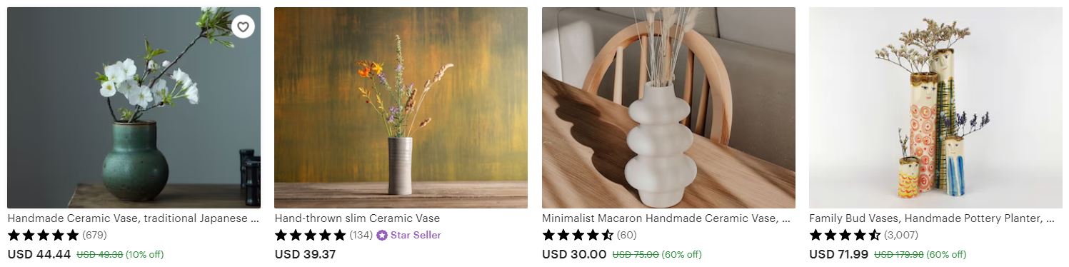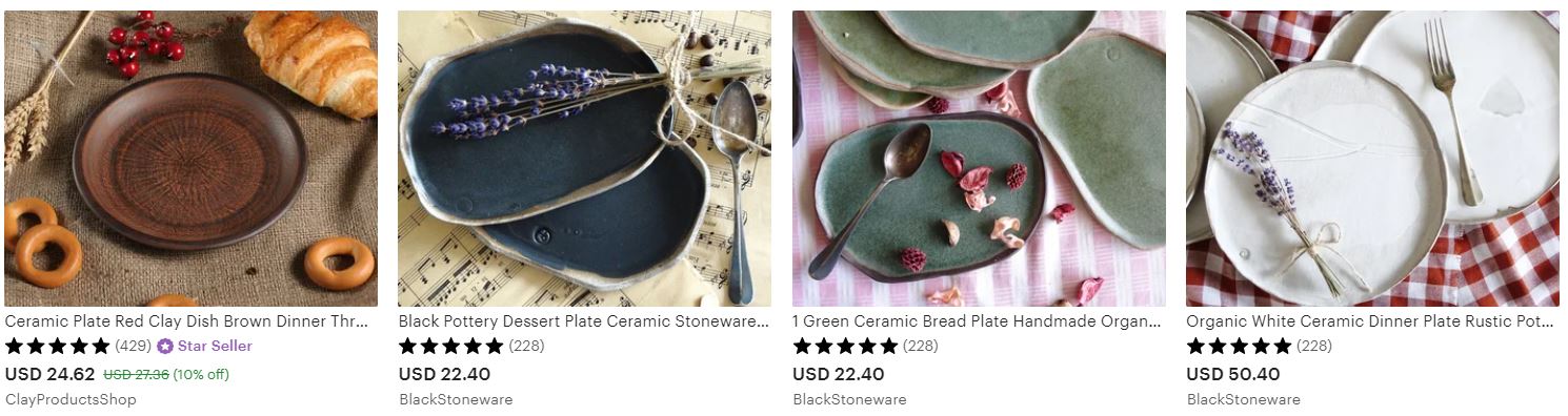 Za Etsy kažu da je vodeća tvrtka za e-trgovinu usmjerena na unikatne, ručno izrađene ili vintage predmete. Tamo se predmeti se prodaju u širokom rasponu kategorija, uključujući nakit, torbe, odjeću, kućni dekor i namještaj, igračke, umjetnost itd. Uz Etsy možete pronaći kupce na globalnom tržištu. Također, to je odlična prodajna platforma na kojoj možete provjeriti što se dobro prodaje i koliko vi možete naplatiti svoj keramički proizvod.